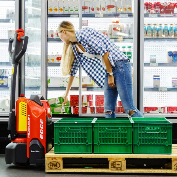 Используйте самоходную тележку PT E15N NOBLELIFT на складах и в магазинах с небольшой площадью, а также на мезонинах, или внутри транспорта за счет компактной конструкции и небольшого веса, всего 125 кг, в течении рабочей смены без подзарядки!